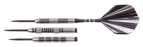 NODOR 80% Tungsten Steel-tip Dart Set features: 80% tungsten barrels, Striped Aluminum shafts, 2-D or embossed flights, 18, 22, and 24 gram, Set Includes: 3 darts with 3 spare flights, 3 spare shafts, and Slim Trac case. One year warranty against defects.