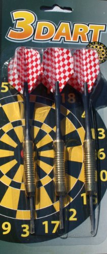 - Three 18 gram contoured brass barrel darts with polycarbonate shafts