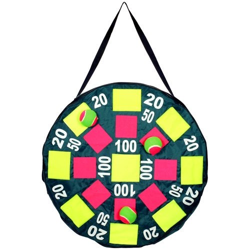 Aim to be the top scorer at the office with the Velcro Dart Ball Board - 24 inch. You can host Dart Ball tournaments, challenge co-workers (and win bets), and be the life of the office with this fun set of balls and target. The fuzzy tennis-style balls stick to the neon colored patches on the inflatable target, making this game a test of accuracy and consistency. It's a great way to take a break during a hectic day, or pass time on long conference calls (tell them to ignore the thwacking sound in the background ;-). With practice, you'll have Dart Ball bragging rights among your co-workers.