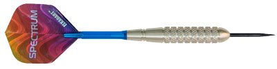 Set includes three darts26 gramSteel tips2-D Glitter flightsBlack resin caseMade in EnglandNickel silver barrelsPolycarbonate bubble shafts90 days Warranty The Elkadart Spectrum is a high-quality nickel silver dart with stylish designs more for the intermediate player. It's lighter weight polycarbonate shafts help keep the weight of the dart up front and headed towards it's target providing better accuracy.